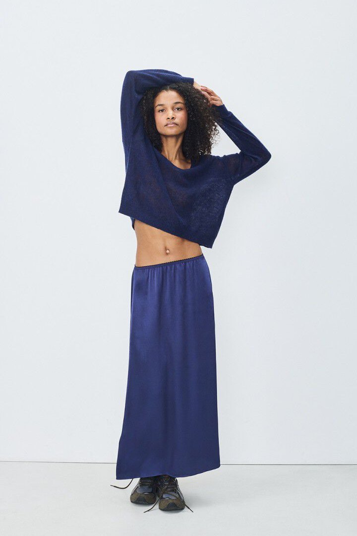 American Vintage pulover Dumy je privlačen zaradi fine, ultra lahke in mehke pletenine. Zaradi kratkega, rahlo napihnjenega kroja je eleganten in vsestranski – lahko ga kombinirate z jeansom ali obleko za bolj eleganten izgled.