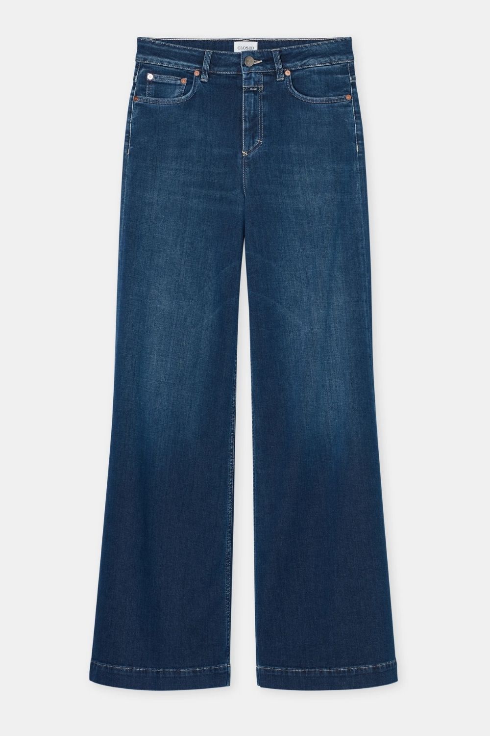 CLOSED kavbojke Glow-Up v širokem kroju z visokim pasom in sproščenimi hlačnicami. Hlače so narejene iz lahkega italijanskega kašmirskega raztegljivega denima (10 oz.) znamke Candiani. Od tkanine do pranja in vsake podrobnosti so te kavbojke 100 % izdelane v Italiji. Del Closed linije trajnostnega jeansa A BETTER BLUE.