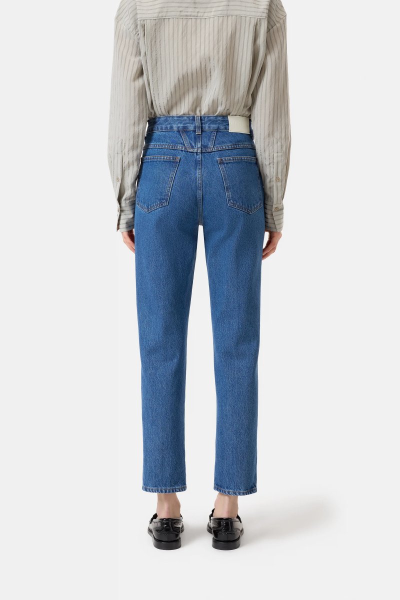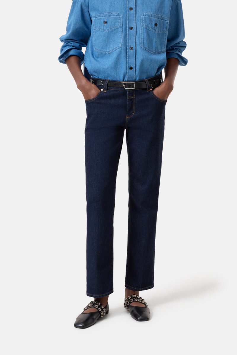 CLOSED hlače Roan z visokim pasom in ravnimi hlačnicami so narejene iz visokokakovostnega italijanskega neraztegljivega denima. Kavbojke so del Closed trajnostne linije jeansa A BETTER BLUE in so v celoti izdelane v Italiji. Delež denima za te kavbojke je recikliran – pridobljen je iz rabljenih oblačil.