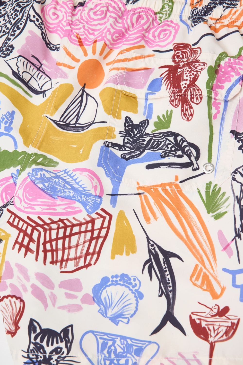 CLOSED kopalne kratke hlače v klasičnem kroju s srednje visokim pasom. Imajo elastičen pas z vrvico in poletni potisk, navdihnjen z Grčijo. Izdelane na Portugalskem.