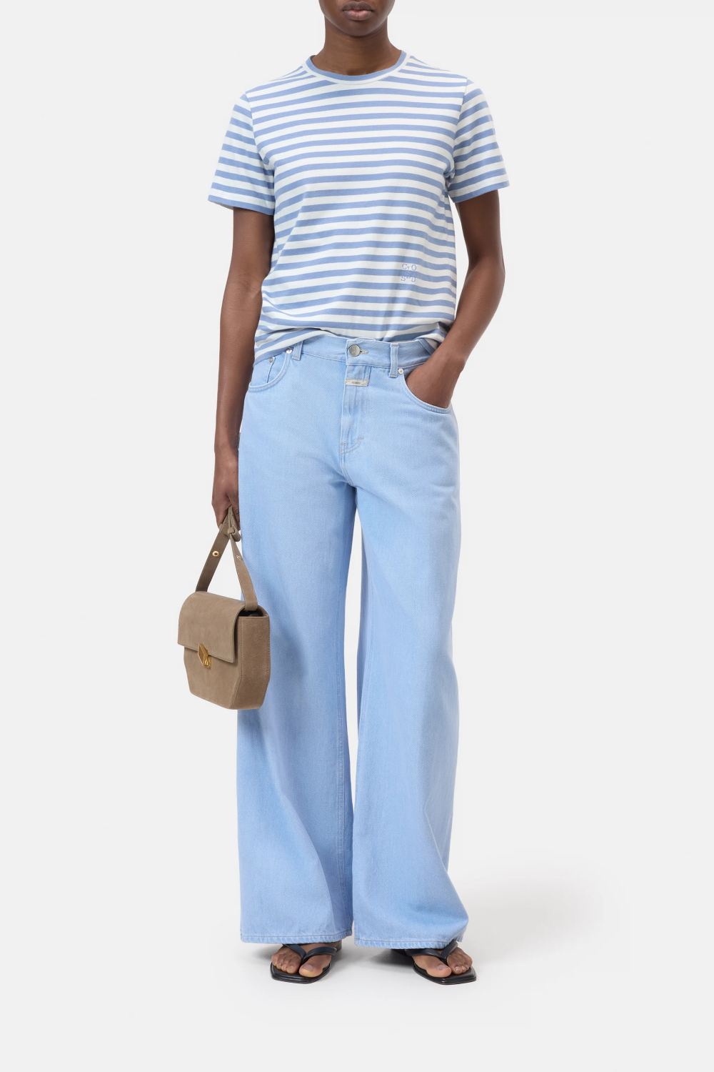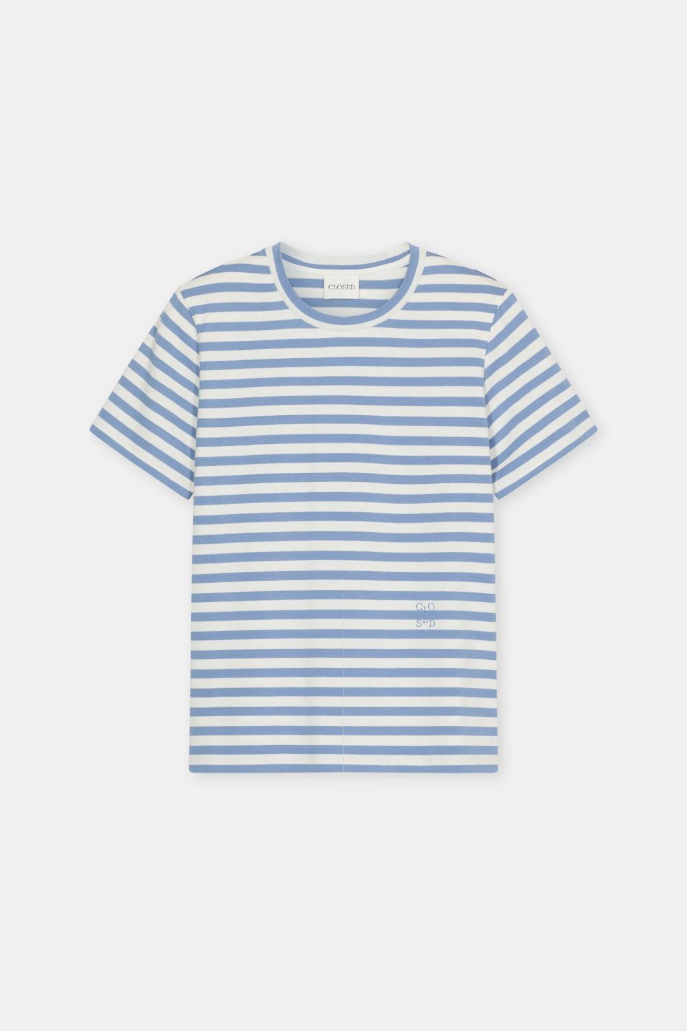 CLOSED majica s kratkimi rokavi je izdelana iz ekološkega bombaža v klasičnem kroju. Rebrast okrogel izrez in diskretna vezenina z monogramom pri pasu dopolnjujeta čist, sodoben videz.
