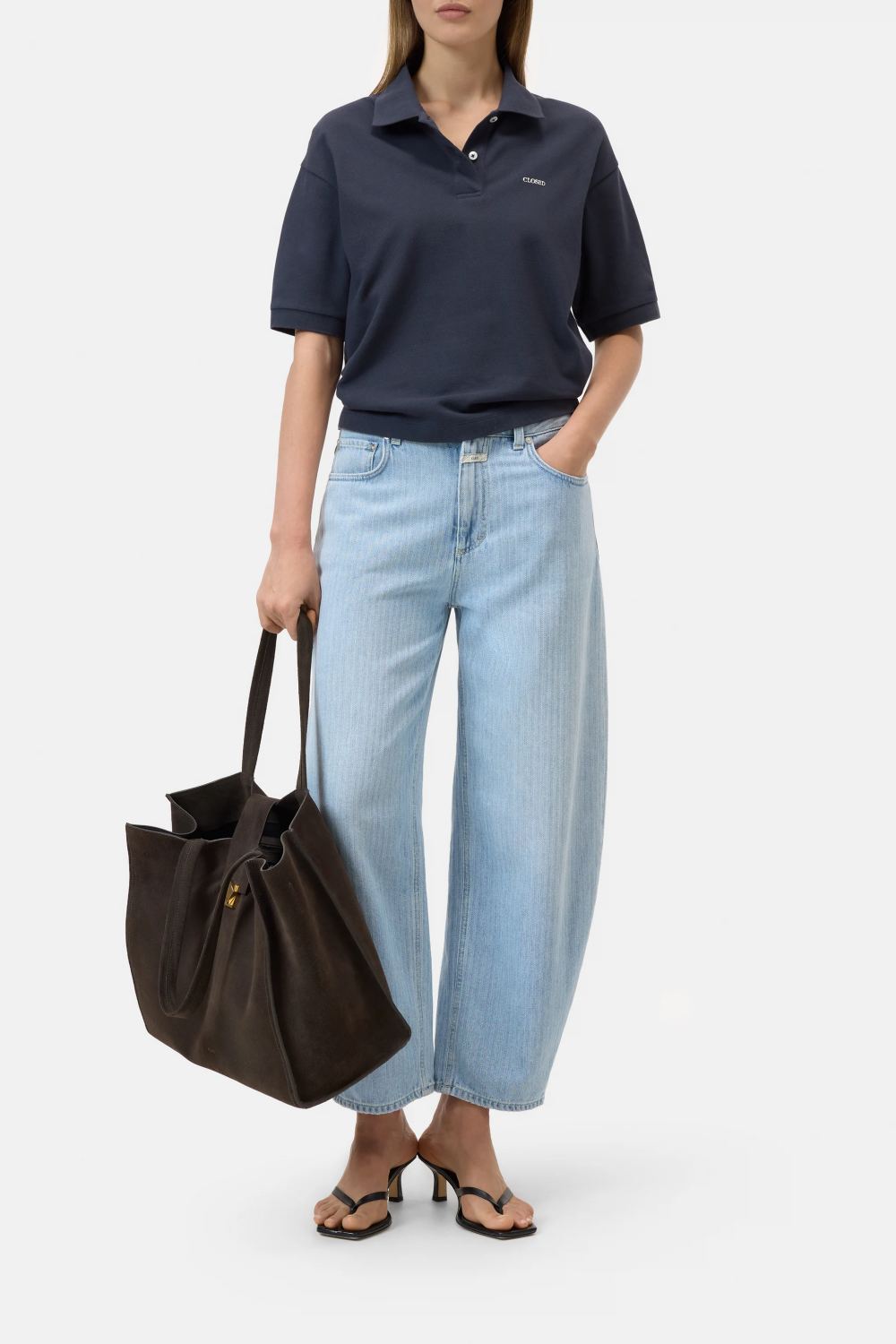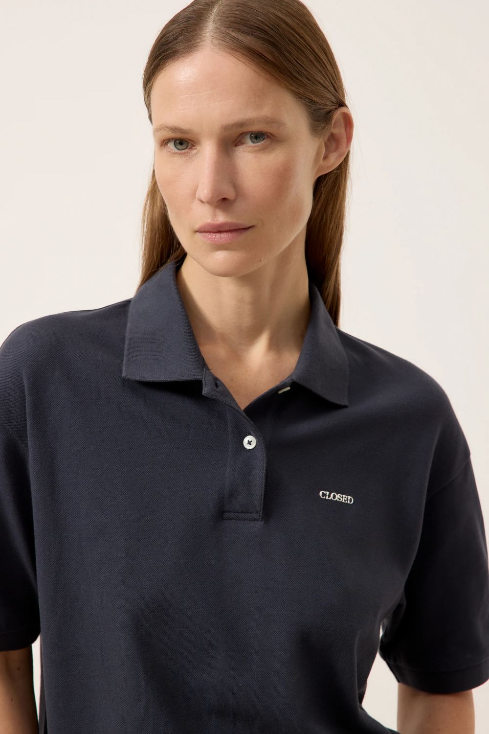 CLOSED premium bombažna polo majica z elegantnimi gumbi iz biserne matice. Klasičen kroj zagotavlja optimalno udobje, medtem ko koničast ovratnik in rebrasti zaključki na rokavih ustvarjajo sodoben videz.