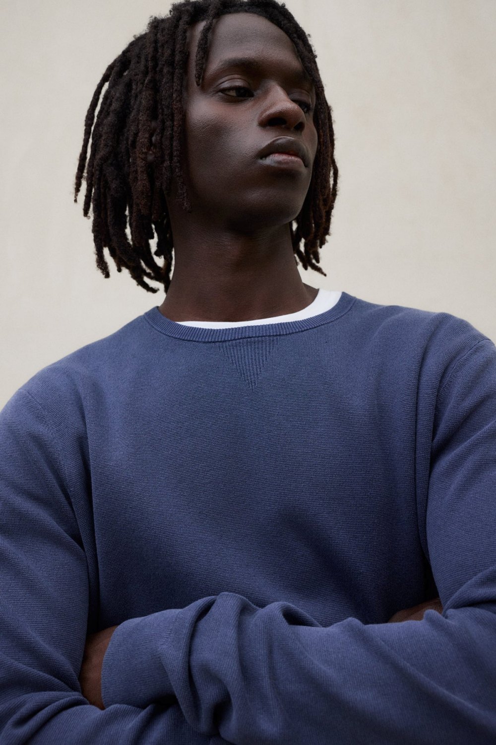 CLOSED pulover z okroglim izrezom, izdelan iz čistega bombaža v finem pletivu. Odlikujejo ga rebrasti rokavni zaključki in gladko zaključen spodnji rob – popolna izbira za brezčasen slog in udobje.