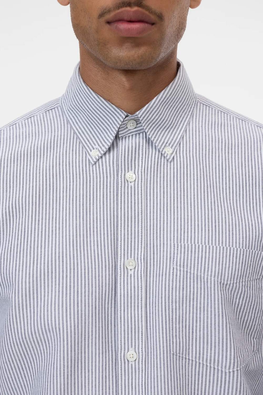 CLOSED srajca klasičnega kroja. Izdelana je iz čiste bombažne oxfordske tkanine, nežna obdelava pa zagotavlja, da tkanina ostane mehka in teksturirana. V detajlih, kot je skrbno izdelan ovratnik na gumbe, se kažejo sledi kakovostne portugalske obrti.