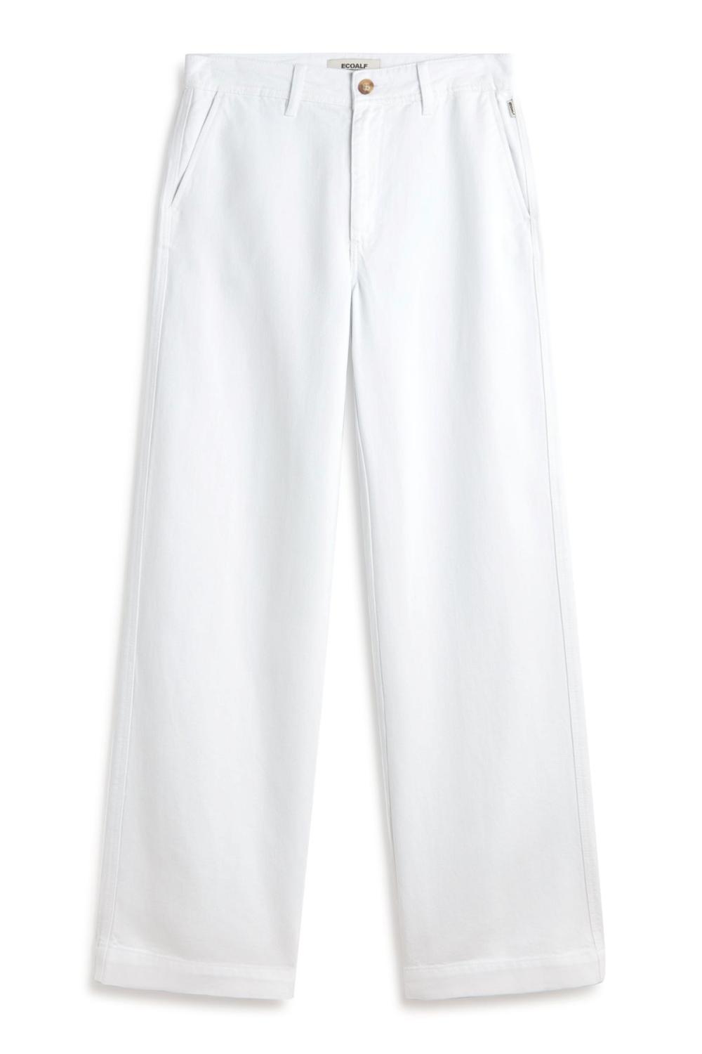 ECOALF hlače Miel so izdelane iz kombinacije ekološkega bombaža in lana, ki zagotavlja naravno udobje in zračnost. Odlikuje jih visok pas, elegantne sprednje gube in zanke za pas, ki poudarjajo prefinjen videz, stranski žepi pa poskrbijo za praktičnost.