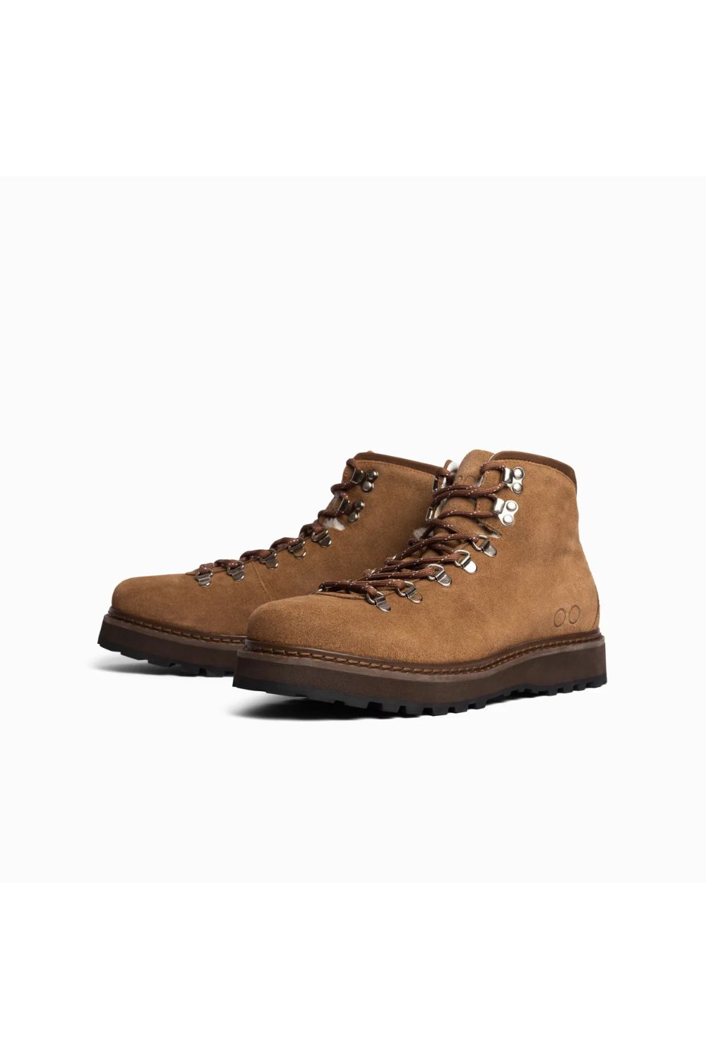 Čevelj v modelu Hiking Core znamke Mono je klasičen pohodni čevelj s čistimi linijami in klasičnim dizajnom. Izdelan je iz vrhunskih italijanskih materialov, z detajli najvišje kakovosti in obrtniško spretnostjo, ki sega več generacij nazaj. Robusten zgornji del je pritrjen na gumijast podplat, notranjost pa oblečena s toplo ovčjo dlako.