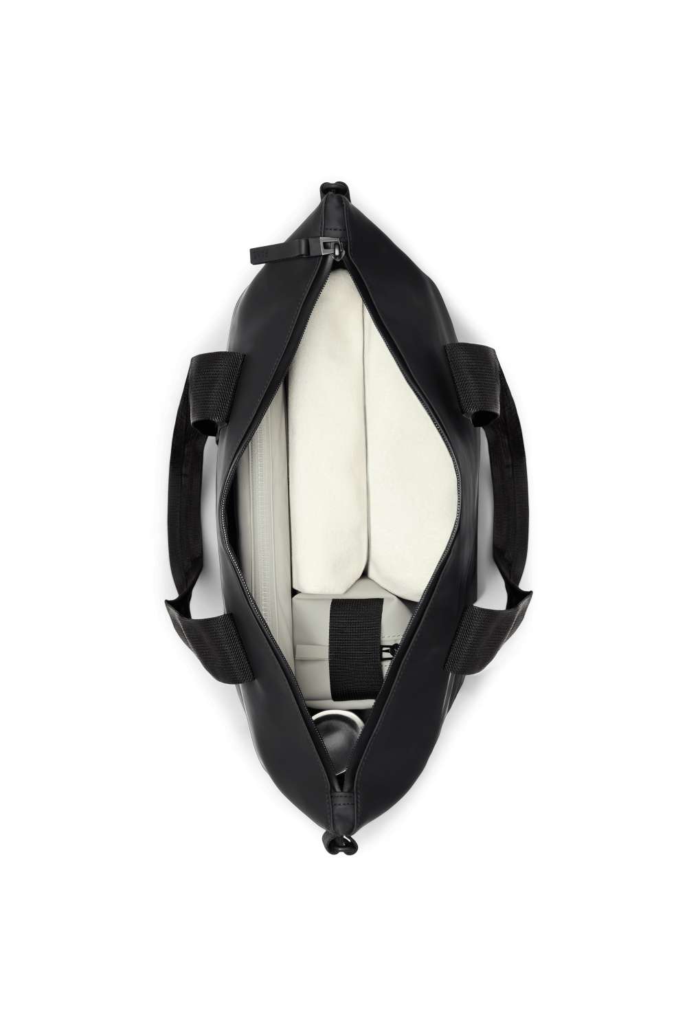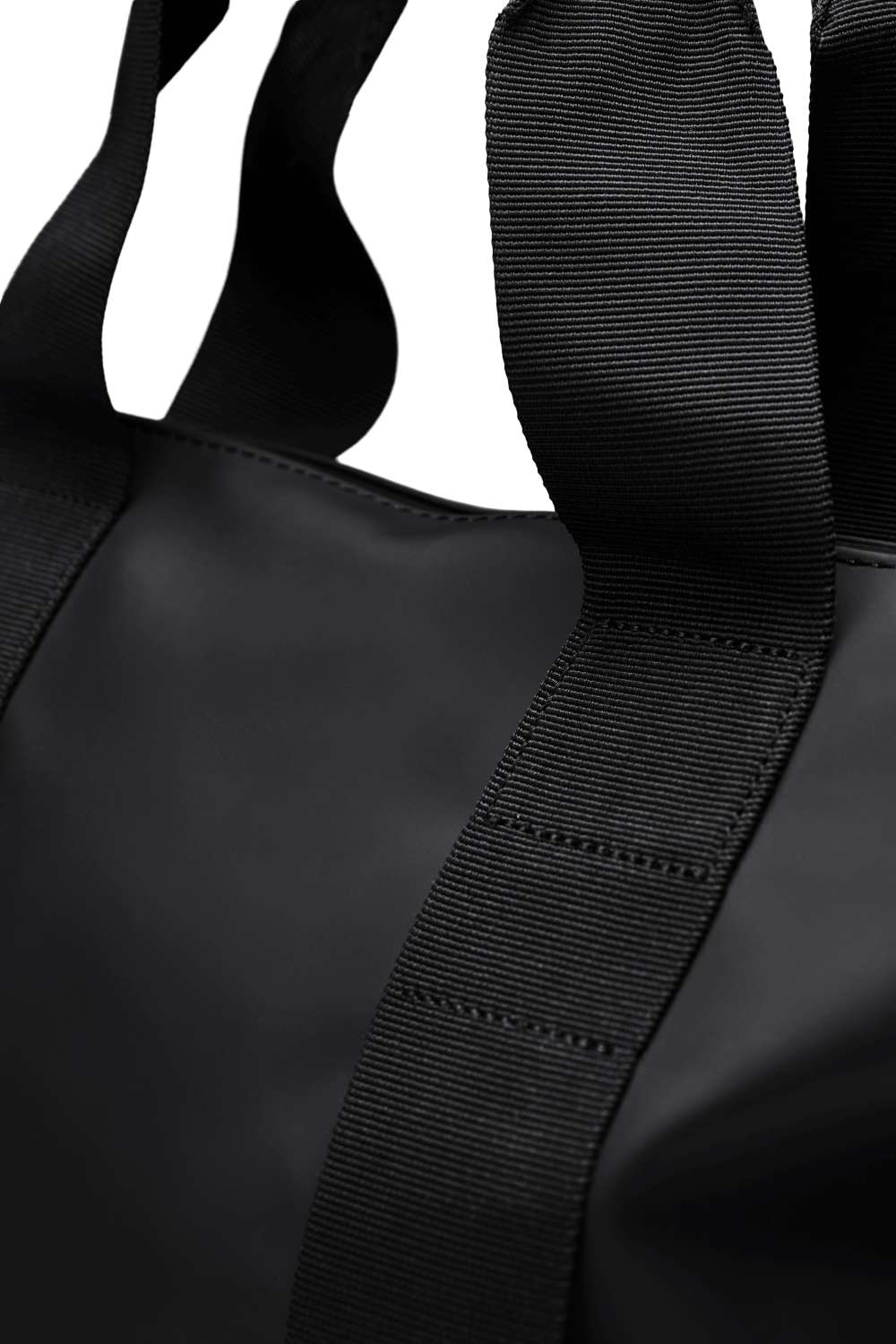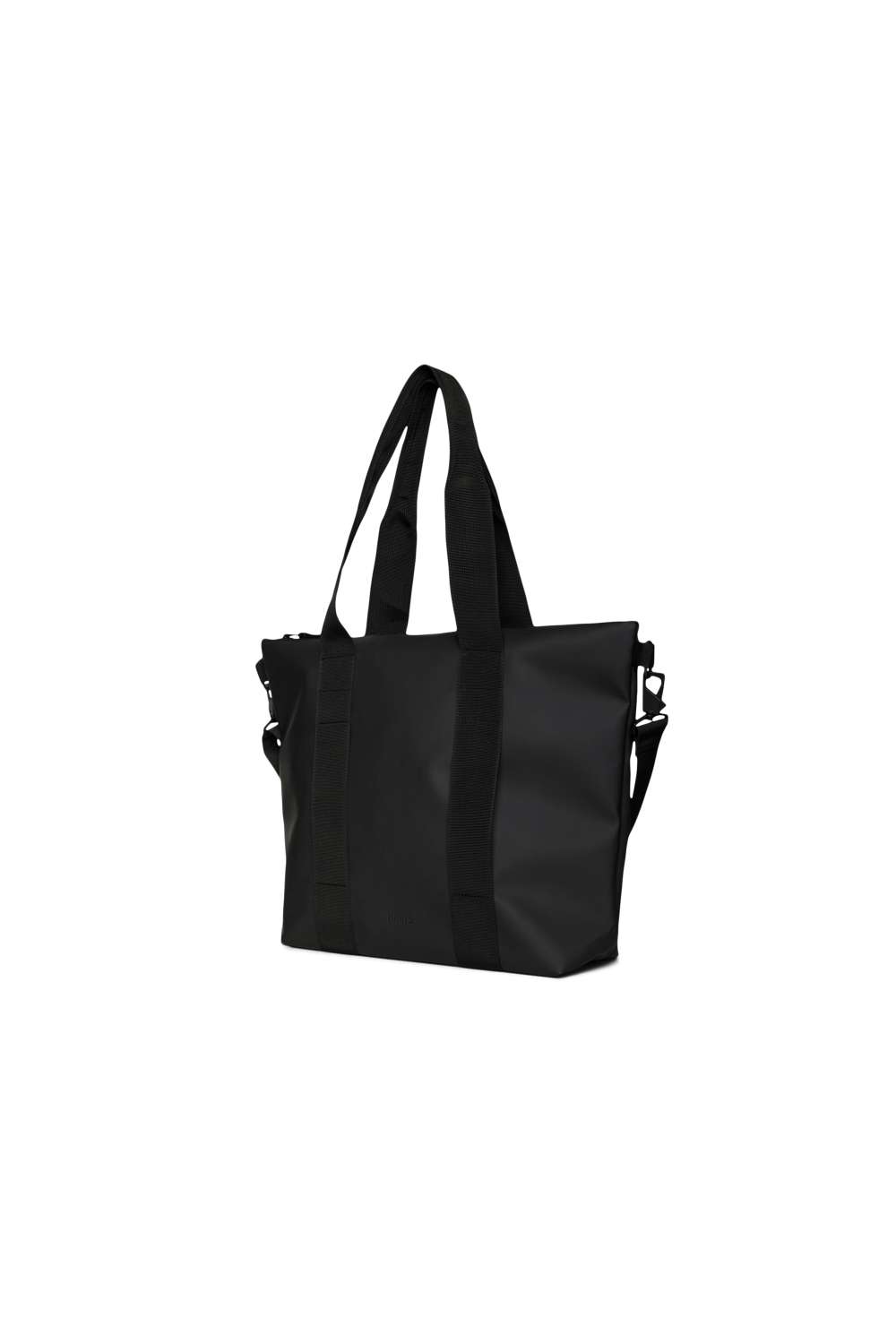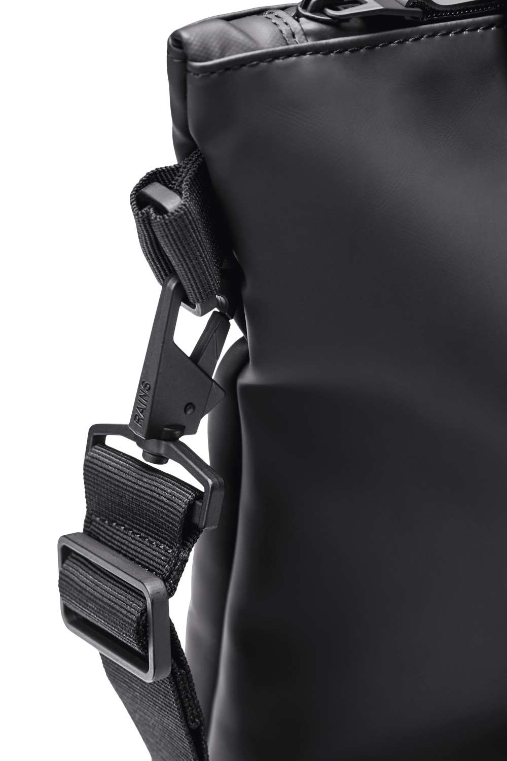 Rains Tote Bag Mini je vodoodporna torba, popolna za nakupovanje, dnevna potovanja ali vožnjo v pisarno. Torba ima prostoren glavni predal, ki se zapira z zadrgo. Torba omogoča različne načine nošenja s snemljivim naramnim pasom in dolgimi ročaji za v roko/na ramena. Ročaji so opremljeni z obročki za pritrditev majhnih predmetov, npr. ključev. Torba je narejena iz značilnega Rains vodoodpornega PU blaga, ki je zasnovano tako, da zagotavlja trdnost pri nošenju in vzdržljivost.